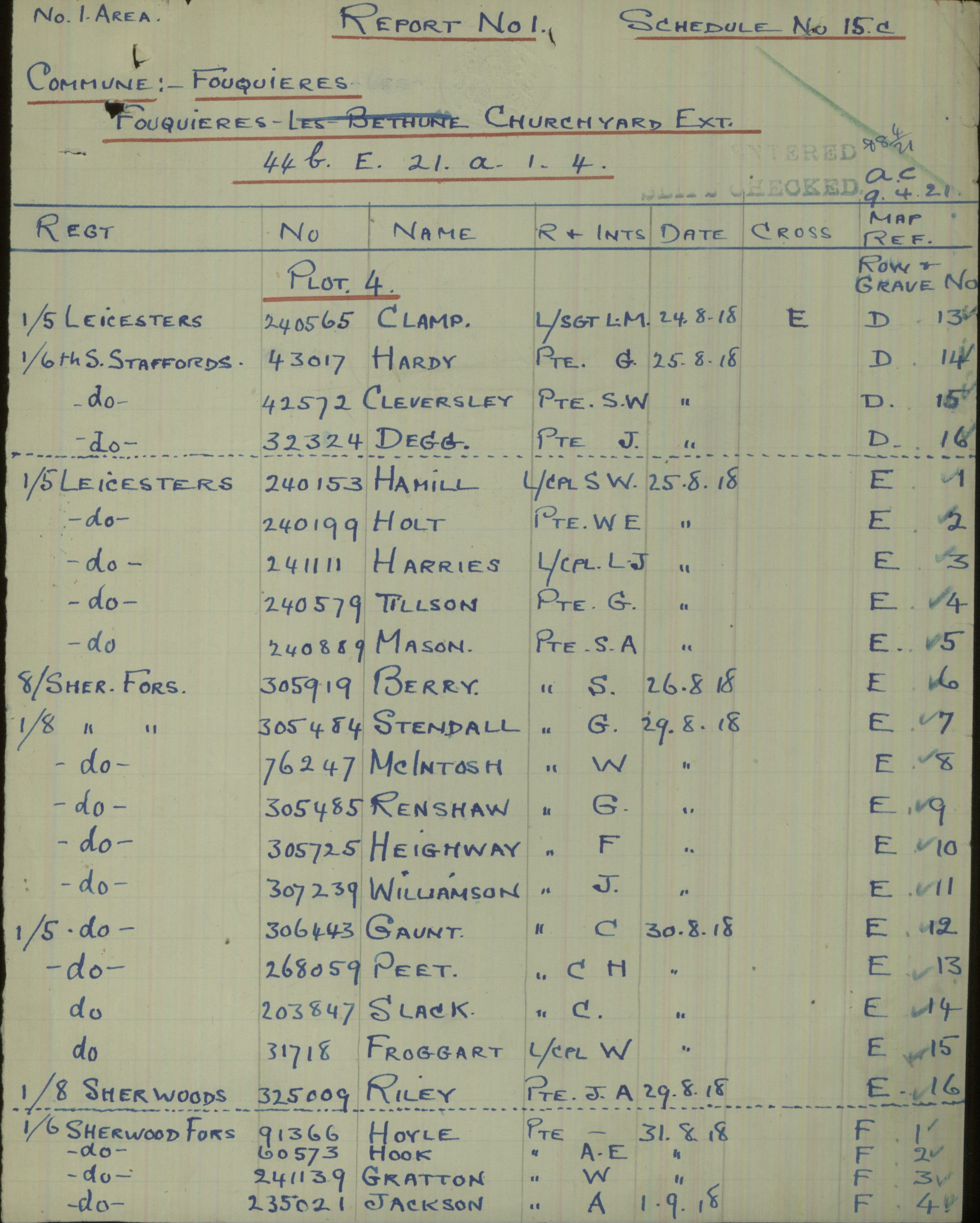 A 1914 recruit from Bonsall and arrived in France August 1916