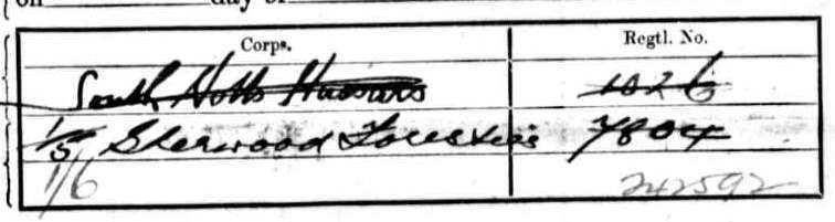 Percy served with the South Nott Hussars (1026) before being wounded and transferred to Hospital in England. He returned to France with 1/5th Battalion (7804), before being transferred to the 1/6th Battalion as part of the 28th Reinforcement. He was NOT renumbered at this time, possibly because the 5th Reserve Battalion (i.e. the amalgamated 3/5th and 3/6th Battalions) were issuing unique 4-digit numbers for men that were posted to the 1/5th and 1/6th Battalions.