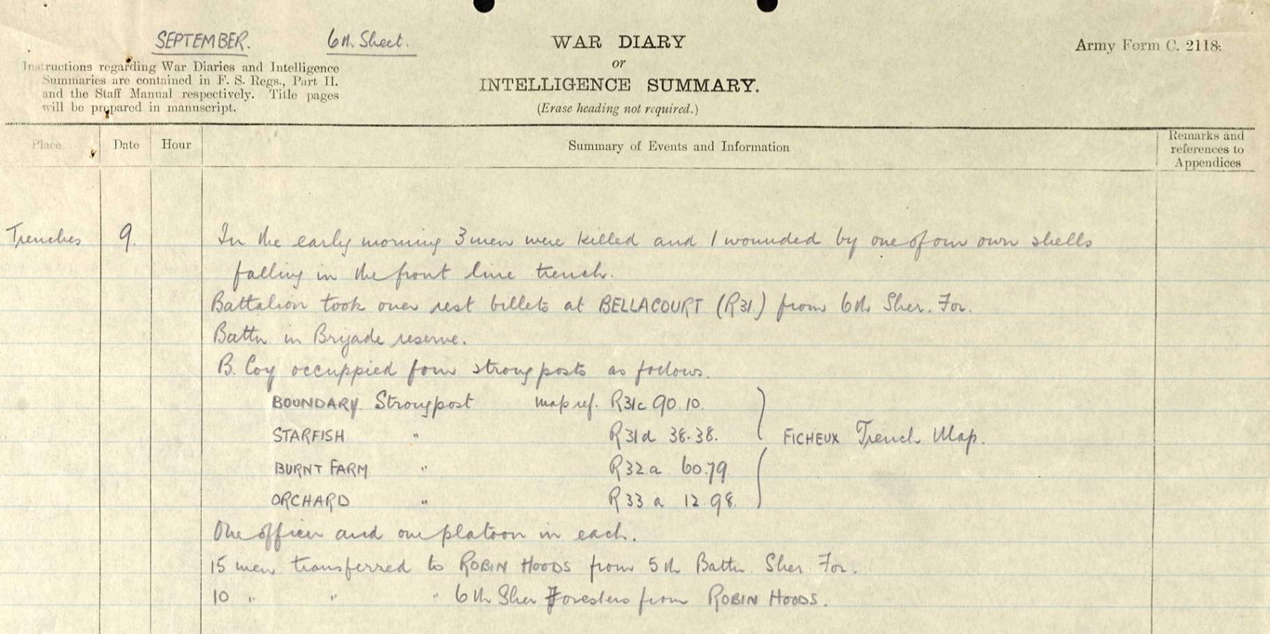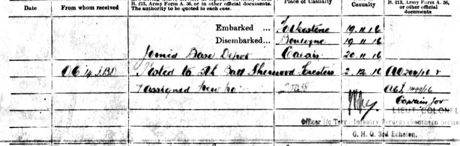 - Transfered to the 1/6th Battalion from the 5th Reserve on 18th November 1916.