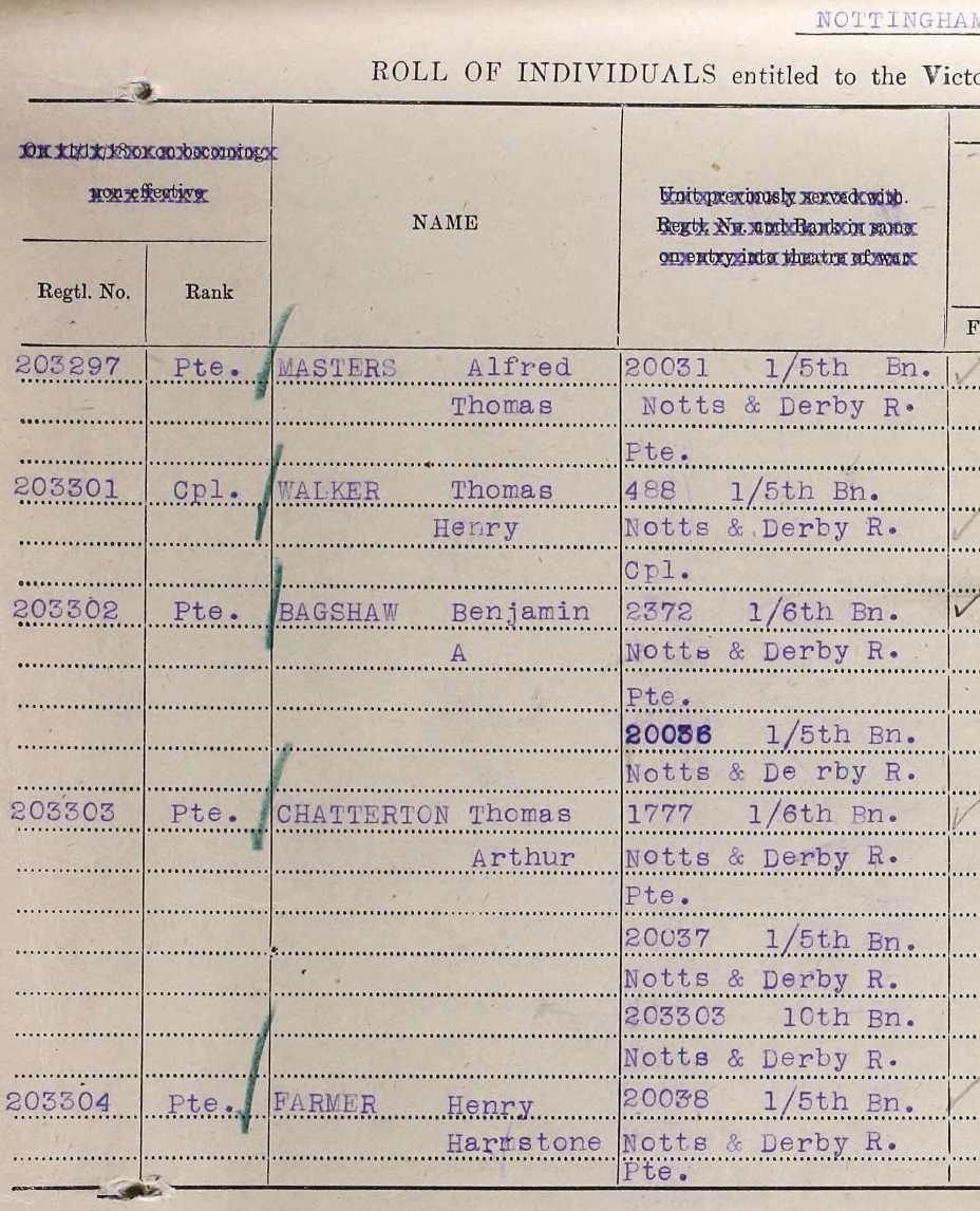 20031/203297 Alfred Thomas Masters who was posted to the 1/5th Battalion at the 14 IDB on the 18th October 1916 (below). Alfred was from Yeovil and enlisted in December 1915. He was posted to the 8th Reserve Battalion (4530) before transferring to the 7th Reserve Battalion when they merged on the 1st September 1916 and he was renumbered 6652.