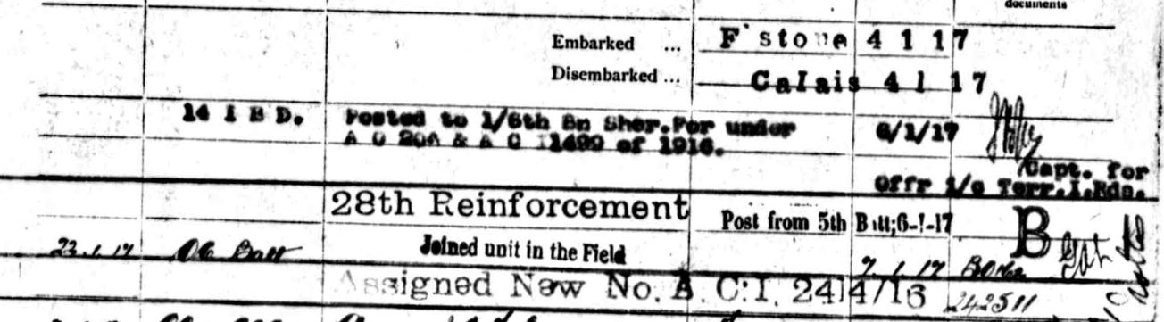 He was wounded for the 4th time two months later on the 3rd June 1917, this time with a GSW in the back and was transferred to England.