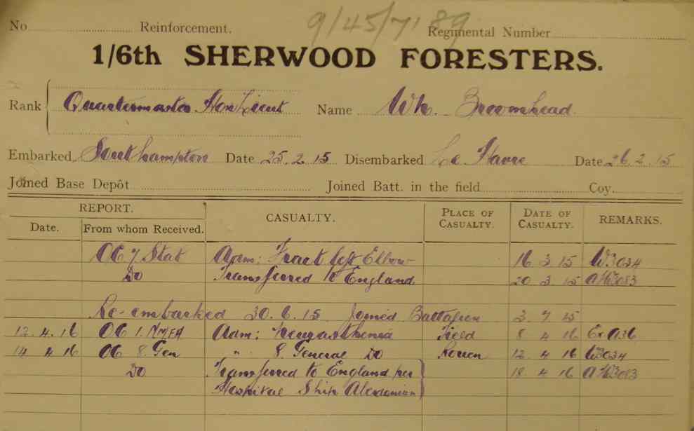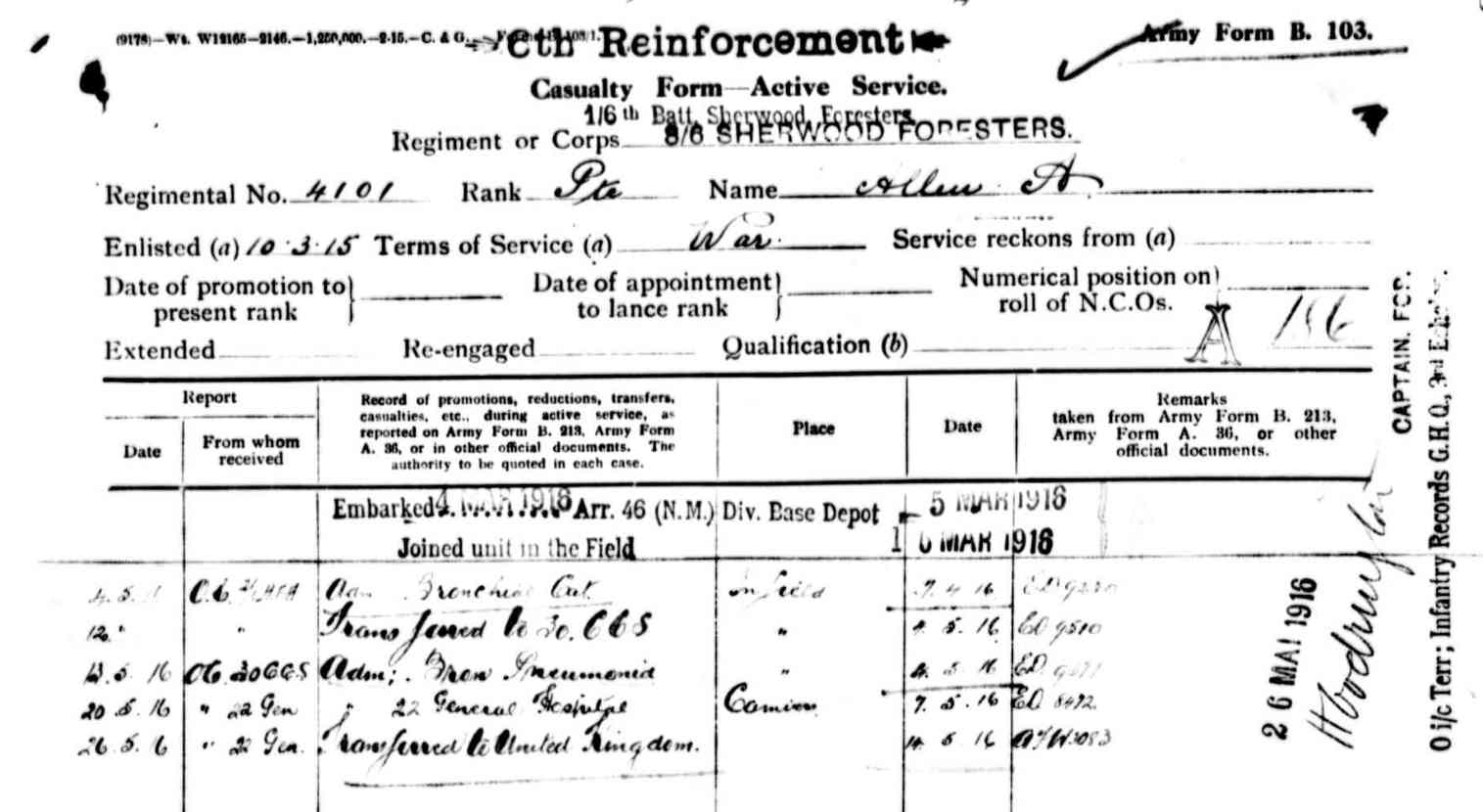 On November 1914 the 46th North Midland Cyclist Company was established and Commanded by Captain BH Winder. Albert transferred to this Company and accompanied them to France on the 28th February 1915.