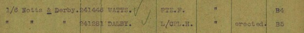1687/240215 Pte Willie Coleman a miner from Barlborough and a pre-War Territorial who served with F Company and signed the Imperial Service Agreement at Eckington in May 1912. First wounded in June 1915 he returned to France with the 6th Reinforcement in March 1916 he suffered from shell shock on the 30th May 1917 and later returned to his unit. Disembodied on Demobilisation in February 1919.
