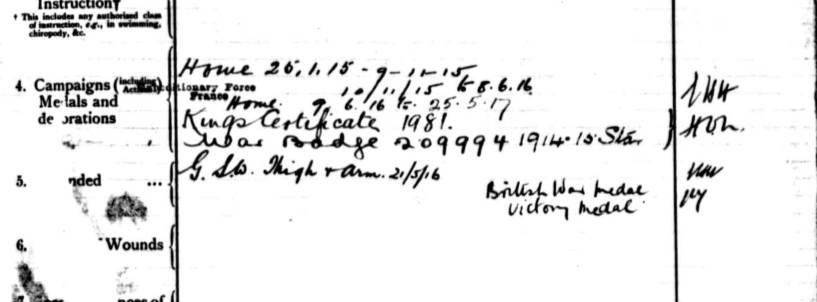 3669 Pte Edgar William Jolly a labourer from New Tupton who enlisted in January 1915 band arrived in France with the V Reinforcement suffered a GSW to the the thigh and arm and was transferred to hospital in England.