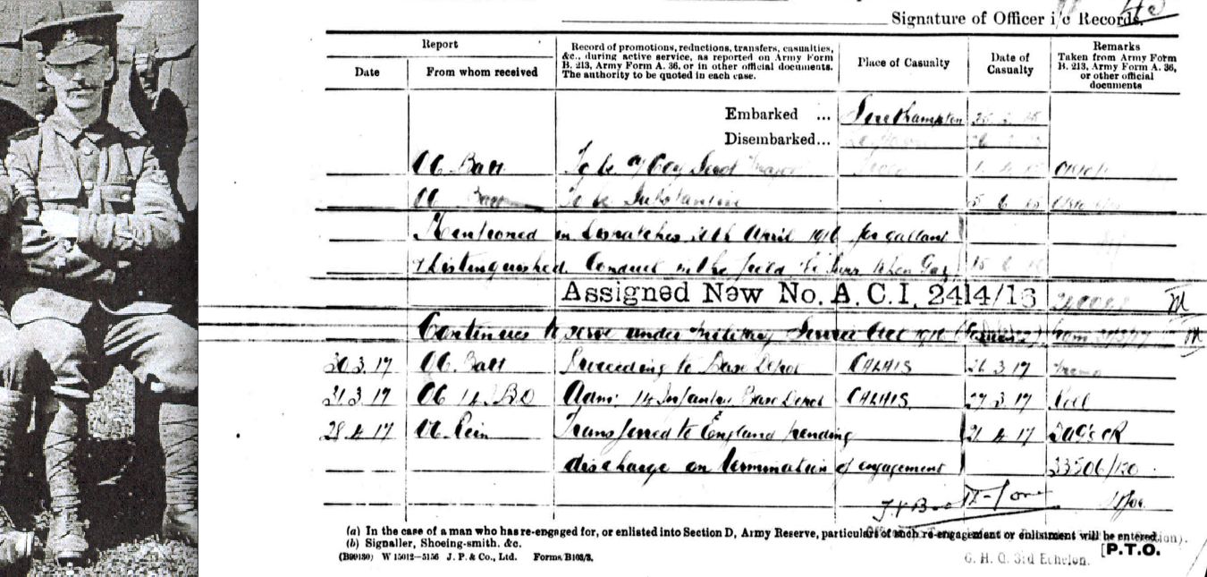 He joined the 6th Battalion in 1908 and arrived in France on 25.2.15.