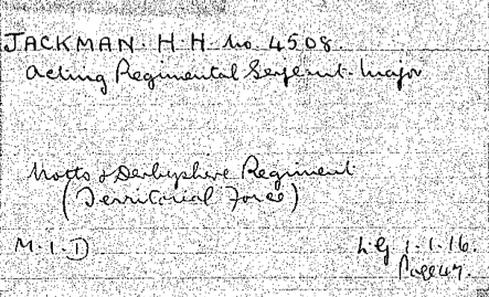 Mentioned in Dispatches, London Gazette 1st January 1916.4508-jackman