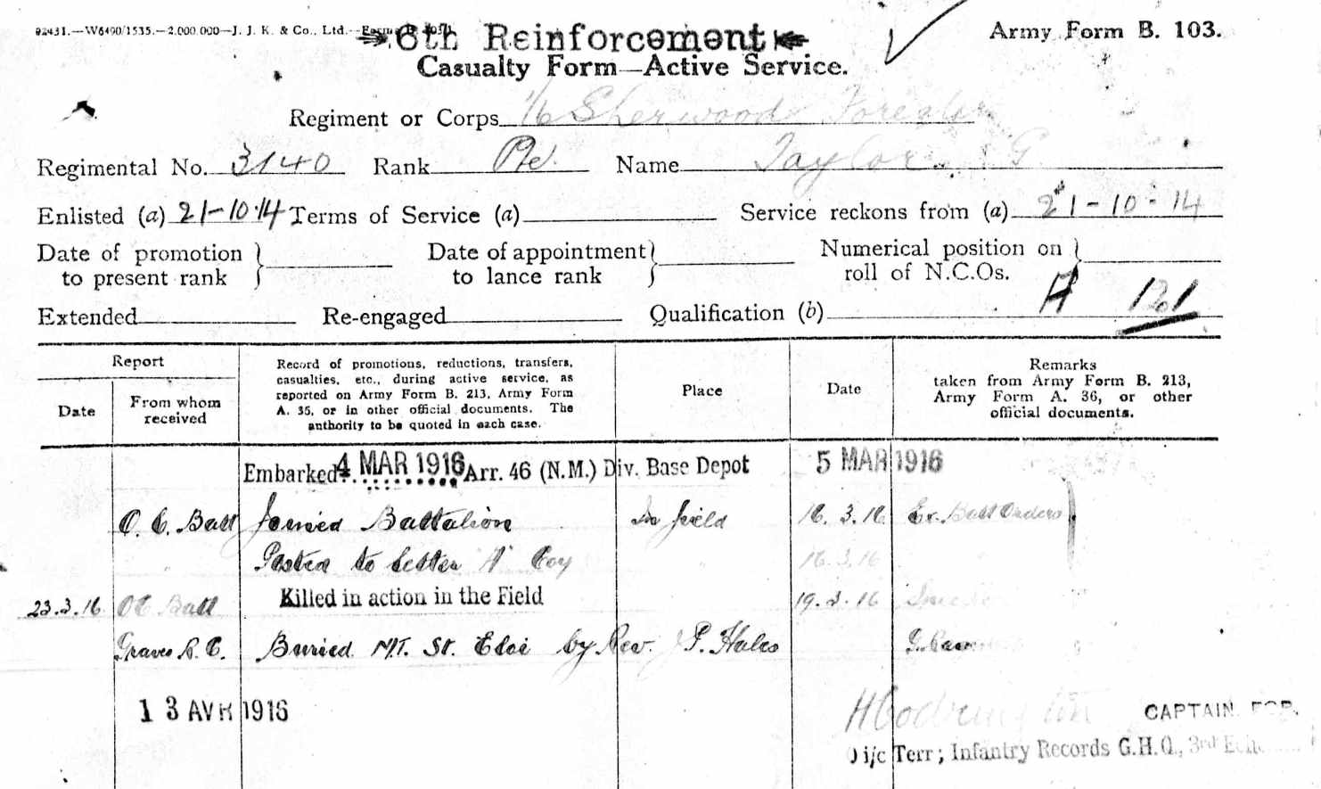 - 2011 Pte William Clowes, an engine cleaner from Buxton and a Pre-War Territorial with “C” Company.
