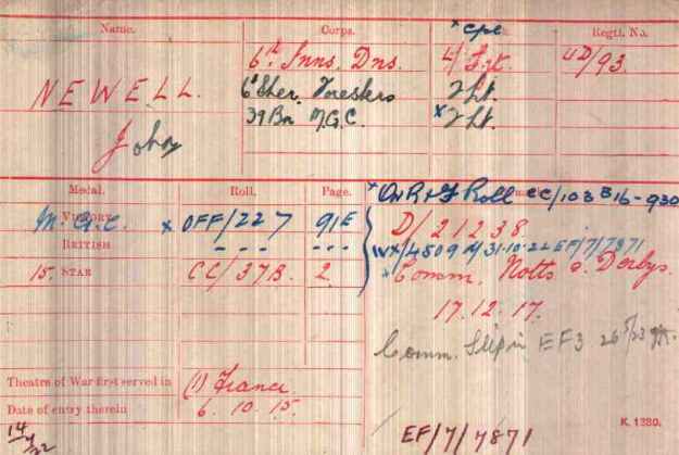 John Newell from Dungannon in Country Tyrone. Commissioned December 1917. Transfered to the 39th Battalion Machine Gun Corps on 12th September 1918.