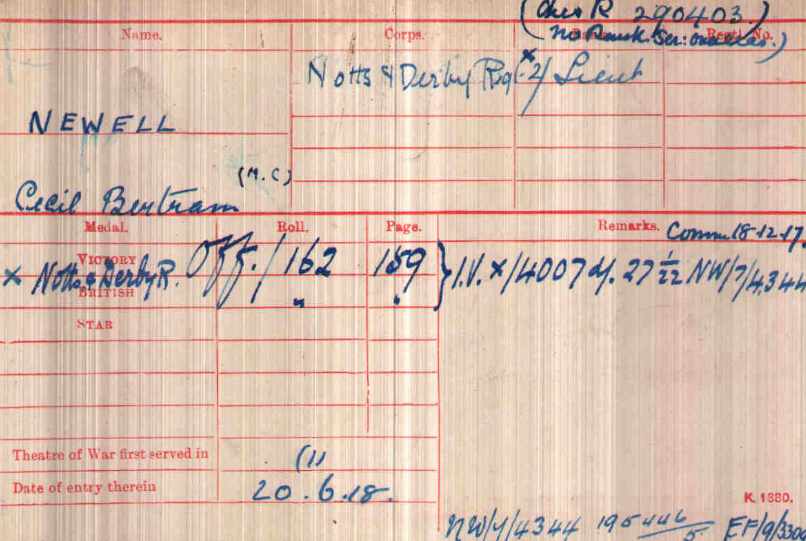Cecil Bertram Newell from Maccelsfield was Commissioned in December 1917 and arrived in France in June 1918. He served with the 1/6th Battalion from 13th July 1918 and was still serving at the end of the War. Was awarded the Military Cross.