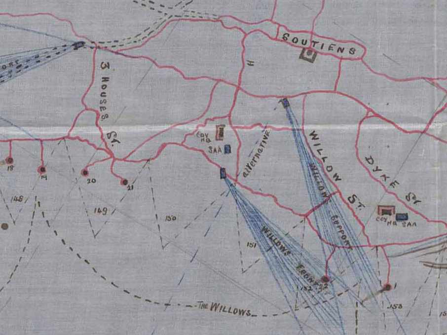 24/X/17: Hostile artillery again “area shooting”. An enemy patrol of 20 men was seen returning to their lines S of BOIS HUGO H26c but was not engaged.