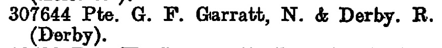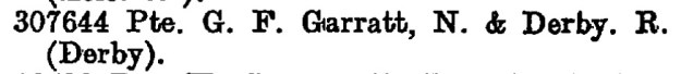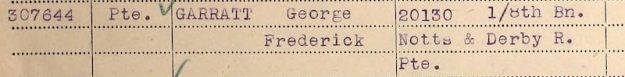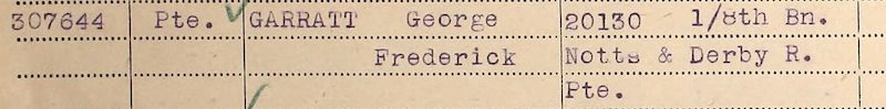 George Frederick Garratt aged 20 and the son of Lucy Ann Garratt of 28 Babbington Lane, Derby.