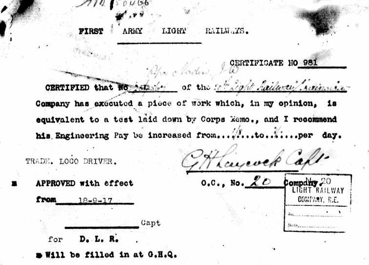 2403 Pte William Nadin, an engine driver from Buxton, was transferred to England and later served as a loco driver with the 20 Light Railway Company Royal Engineers. William had previously served with 2nd Volunteer Battalion Derbyshire Regiment and reenlisted in September 1914 aged 35.