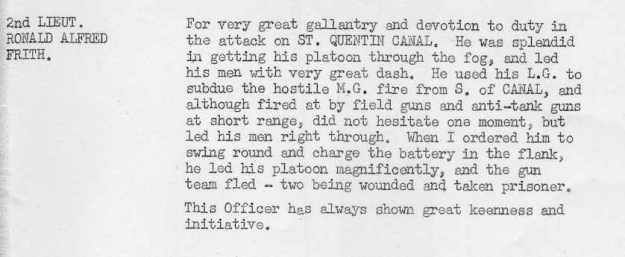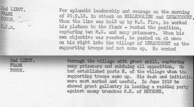 As soon as possible a small party of volunteers was formed to go in search of the missing. Groans were heard coming from the HAIRPIN CRATERS and proceeding into the Craters we discovered 2/Lieut FLEWITT who had been badly hit in the head and in the stomach. Pte’s Bridgestock and Andrews had carried him under very heavy rifle and MG fire from within 20 yards of the enemy post back to the HAIRPIN CRATERS. Pte’s Bridgestock and Andrews showed utter contempt of danger and devotion to duty under the most trying circumstances.