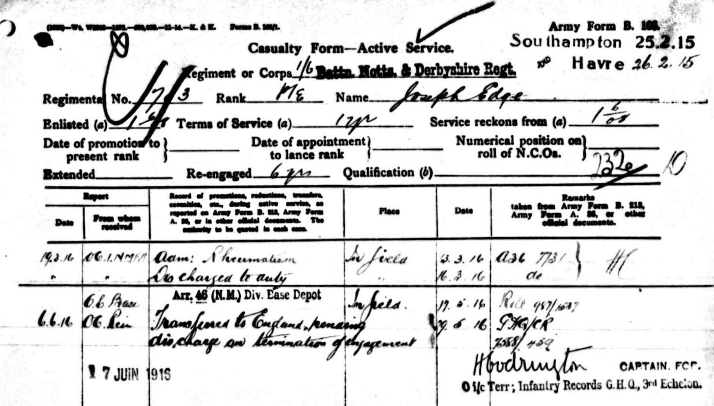 ACQ 25.3.1916: A & B Companies under Capts E.B. JOHNSON and J. TOLSON proceeded to trenches for 6 hours work in marching order without packs. On arrival at the trenches they were detained as the 5th Battalion had attempted to seize the near lip of a crater caused by enemy mine explosion early that day, and had been drives back by enemy bomb attack. About 11 p.m. Lt.-Col. GOODMAN was ordered to proceed to the trenches and organise an attack with the two Companies.