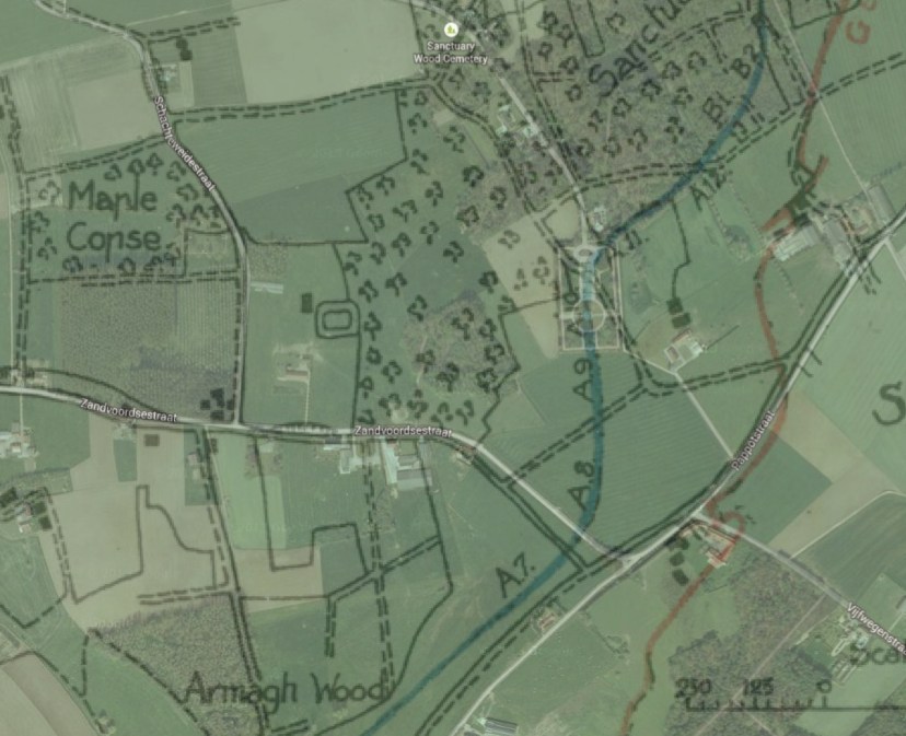 5.8.1915 Sanctuary Wood: Took over A8-12 & B1, B2 from the 5th Battalion. Order of Companies A B C D. Relieved in Maple Copse by 2nd Battalion.