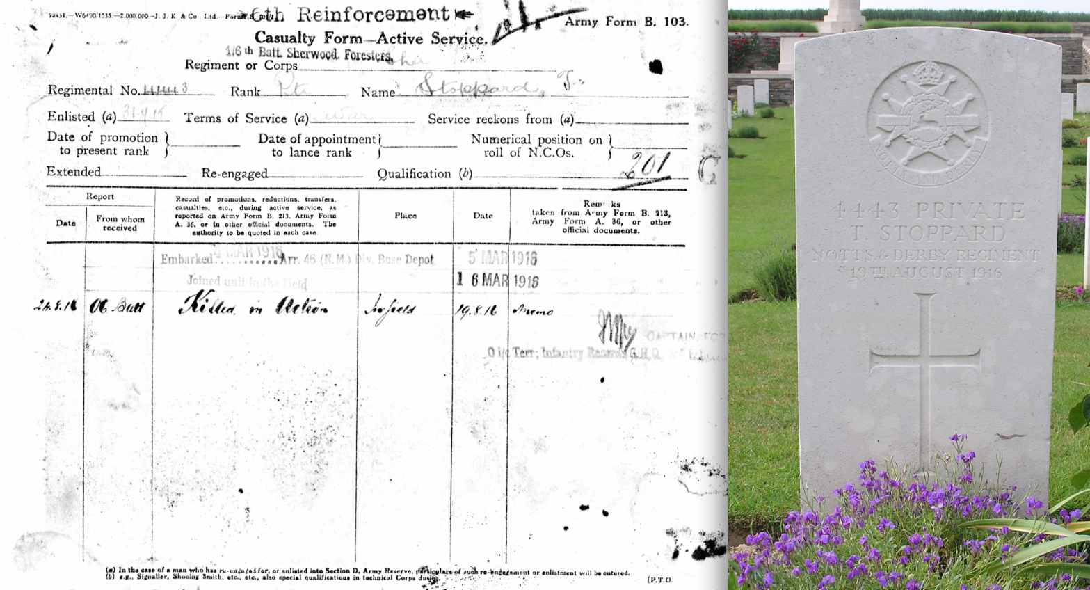 Lizzie Stoppard received a letter from Col Goodwin informing her that her son had been killed in action.