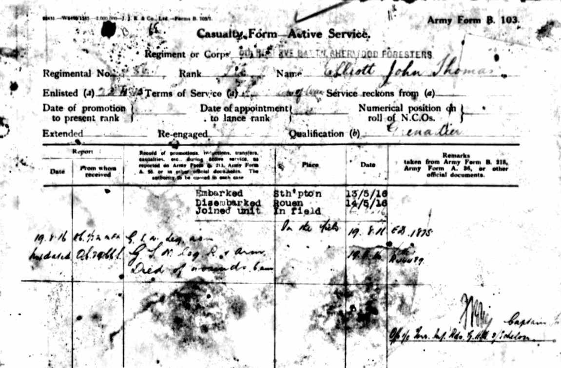 ElliottAlso wounded on this day was 4861 Pte John Thomas Elliott of the 1/5th Battalion.