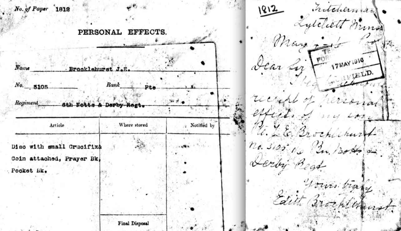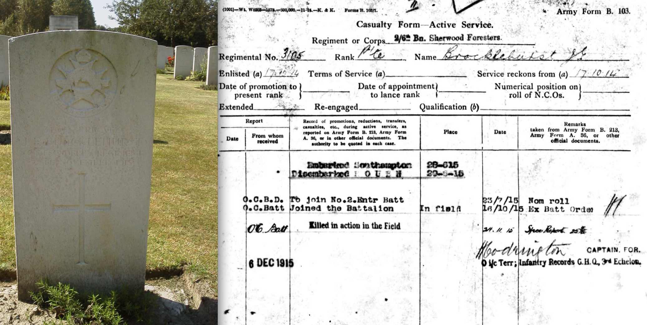 William Carrington enlisted into the 6th Reserve Battalion in October 1914 aged 22. He was a miner by trade and lived at 34 Queen Street in Mosborough near Sheffield. He transferred to the 1/6th Battalion on 16th August 1915 and arrived in France with the III Reinforcement on 19th August. William was twice taken sick in France; the first time with frost bite on 27th November 1915, whilst the Battalion were at Richebourg-L’Avoue and the second time in October 1917. On both occasions he rejoined the Battalion.