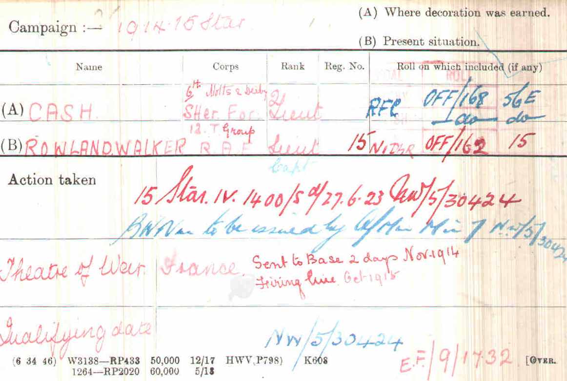 - RW CASH withe precedence from 8th June 1915 (March 2)