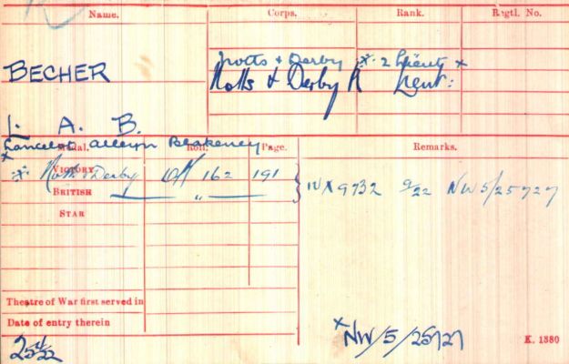 Lancelot Allen Blakeney Becher served with the 1/6th Battalion from 24th July 1918 until the end of the War