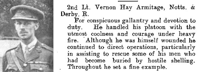 5.8.1917: 2/Lt VH ARMITAGE MC awarded the Belgian Decoration “Chevalier de L’Ordre de la Boutonne”