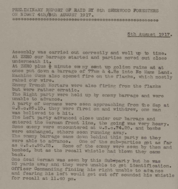 4/5 August: 8th Sherwood Foresters carried out a raid on Enemy trenches in G5C.