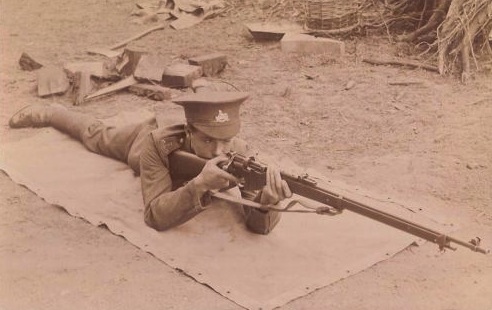 Excellent picture of a Lincolnshire Territorial with a Long Lee Enfield Rifle.