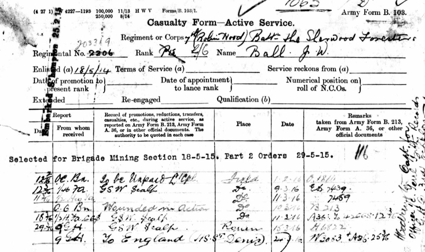 George previously served 8 years with 1st Vol Battn Notts & Derby before re-enlisting in the 1/5th Battn in October 1914.