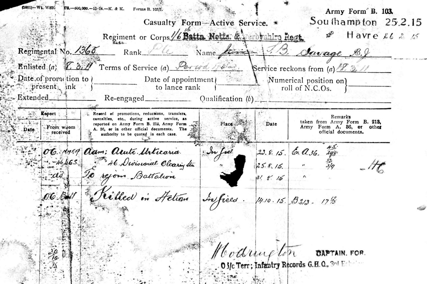 Pingback: 1365 Pte Benjamin James Savage | Derbyshire Territorials in the Great War