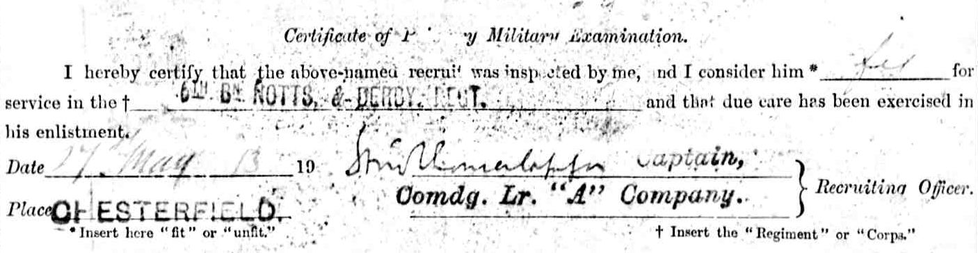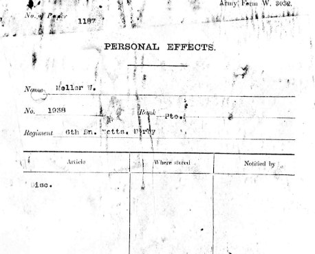 1938 Pte. William Mellors was a fettler who lived at 5 Angel Yard in Chesterfield and enlisted in the 6th Battalion on the 24th May aged 17 and served with Left “A” Company.