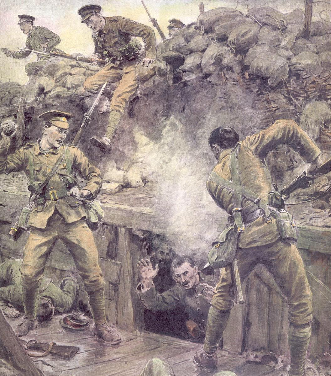 Most of the men in the remaining two Companies of the 5th South Staffs were unable to cross no-mans-land to support their comrades who remained trapped in ‘Big Willie’ and were now fighting in bitter close quarter combat.