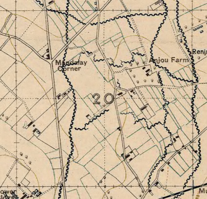 Whilst not technically a ‘lost cemetery’ since the bodies of the men buried here were exhumed and reburied at Klein Veerstraat British Cemetery in 1919 it is non the less an important legacy of the 46th North Midland Division.