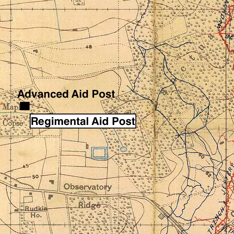 In contrast to the time that they spent in the front line trenches of the Kemmel Sector, the graves of many of the men that were killed in action ‘in the field’ are now lost and they are either Commemorated on The Menin Gate Memorial or have a special Memorial in Maple Copse Cemetery.