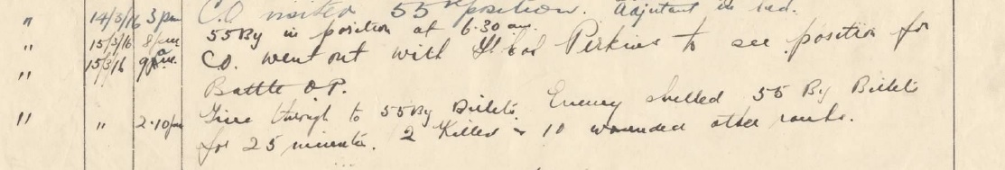 At 2.10pm on the same day the Germans began to shell the 55th Battery billets for 25 minutes leaving 2 men dead and 10 wounded.