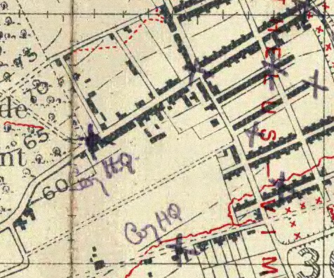 • Half of 16 Platoon at corner house M.30.a.52.75.1917 D Company M30a