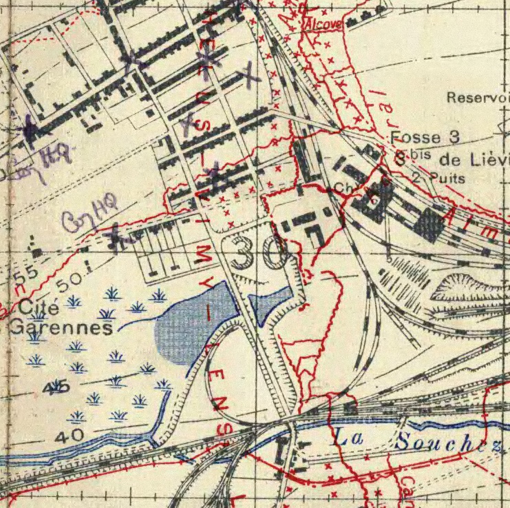 Lens M30On the night 21/22 April “A” Company 6th Sherwood Foresters attached the groups of houses West of FOSSE 3 de LIEVIN in H30a.