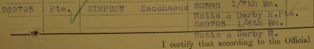 - Pte. 5158/269795 Zac Simpson aged 35 and the son of the late James Simpson of 5 King’s Rd., Old Fletton in Peterborough; husband of May Winifred Simpson of 61a Salford Rd., Streatham Hill in London. He was initially posted as missing.