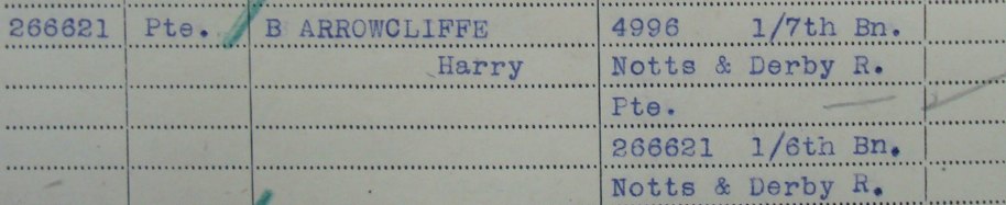 - Pte. 4996/266621 Harry Barrowcliff aged 38 and from Nottingham. Arrived in France in 1916 and previously served with the 1/7th Battalion. Commemorated on the VIS-EN-ARTOIS MEMORIAL to the missing.