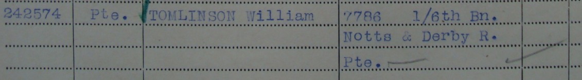 - 7786/242574 L/Cpl. William Tomlinson aged 24 and the son of William Tomlinson of 520 Vernon Rd., Old Basford in Nottingham. Formerly 2396 with the South Notts. Hussars, but did not serve overseas with that Regiment.