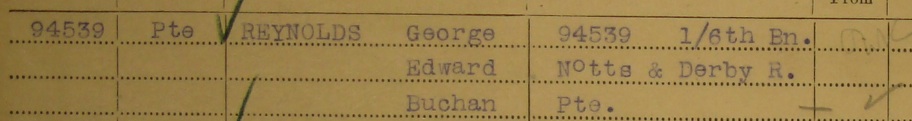 - Pte. 94539 George Edward Buchan Reynolds aged 20 and the son of Albert Buchan Reynolds and Ada Reynolds of 37 Edinburgh St., Hessle Rd. in Hull. Killed at H10.d.2.4.