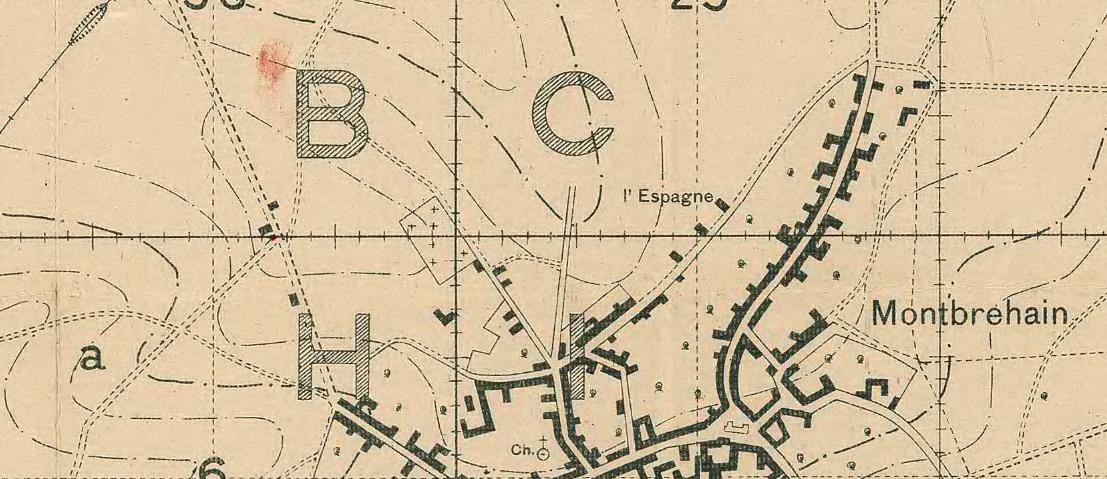 The Battalion reached as far as Montebrehain close to the blue dotted line. However, the Germans offered strong resistance around the cemetary on the north east edge of the Village. In particular there was a strong point of machine guns placed in a fortified house and adjoinging orchard at the cross roads on the western side of the cemetary. Following a series of isolated frontal attacks the village was finally rushed and cleared of Germans after an outflanking manouver by a Company of the 8th Battalion. In total 10 machine guns and 60 prisoners were captured.