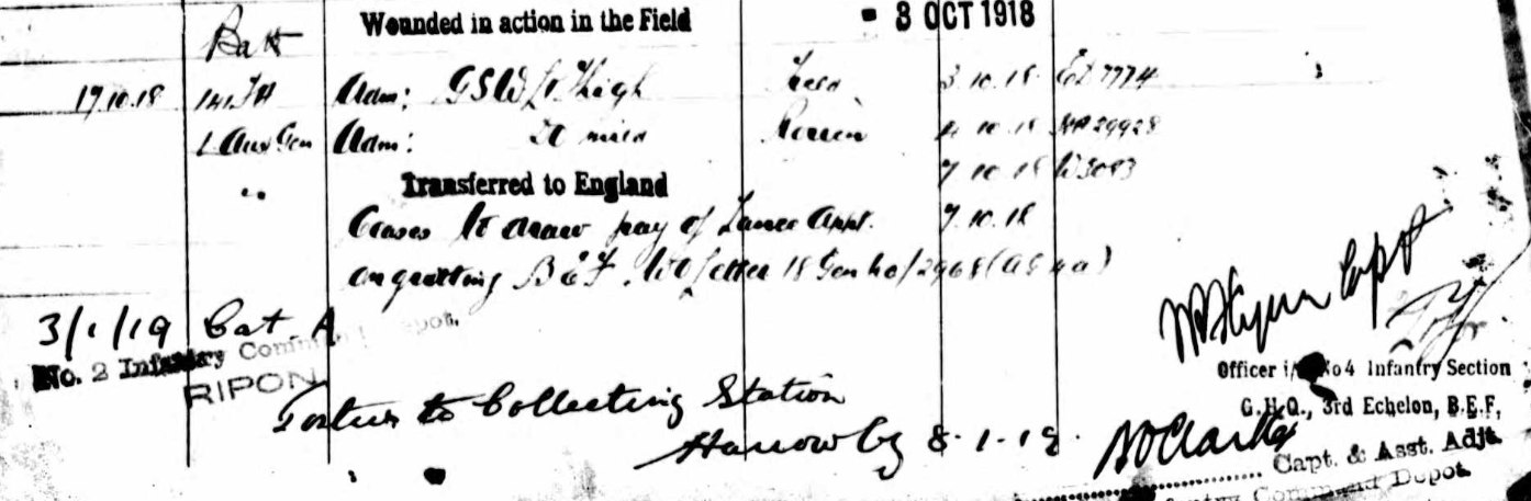 Amongst the men wounded during the taking of the Hindenburg line between 29th September and 3rd October were:-