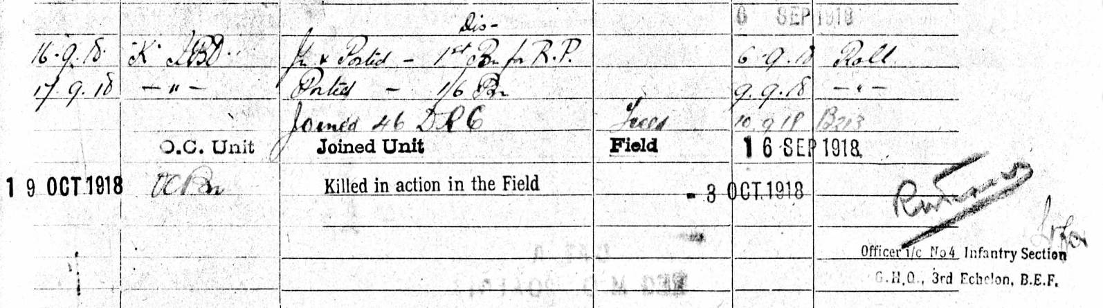 2nd Lieutenant Cyril Ernest Wardle, who you have as a Platoon Commander, also was killed in action the 3rd of October 1918.
