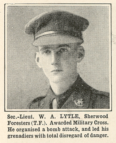 I should like to bring the name of 2/Lieut. W.A. LYTLE to the favourable notice of the G. O. C. He organized the attack with ability and displayed great coolness throughout. I also consider that he showed good judgment in withdrawing at a point when he would otherwise have sustained a serious loss. I have previously mentioned his name in connection with the attack on BIG WILLIE on the 13th/14th October last when he displayed great coolness and disregard of danger in leading his grenadiers.
