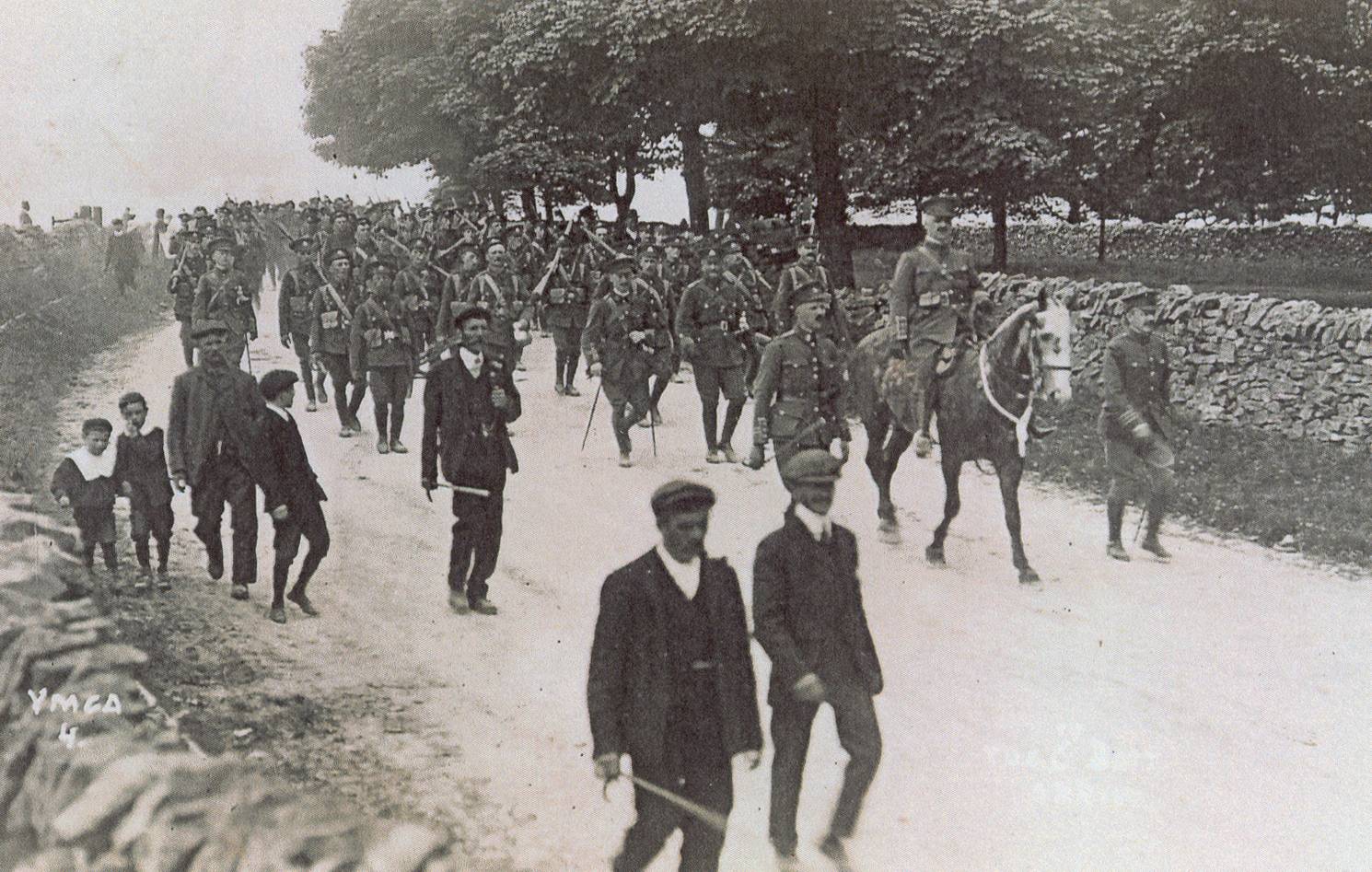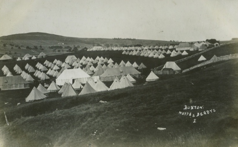 On the afternoon of Monday 8th August, 8000 troops of the North Midland Division marched through the town of Buxton. The column of men stretched for over 2 miles but to the disappointment of many ‘Buxtonians’ the men marched in service dress.