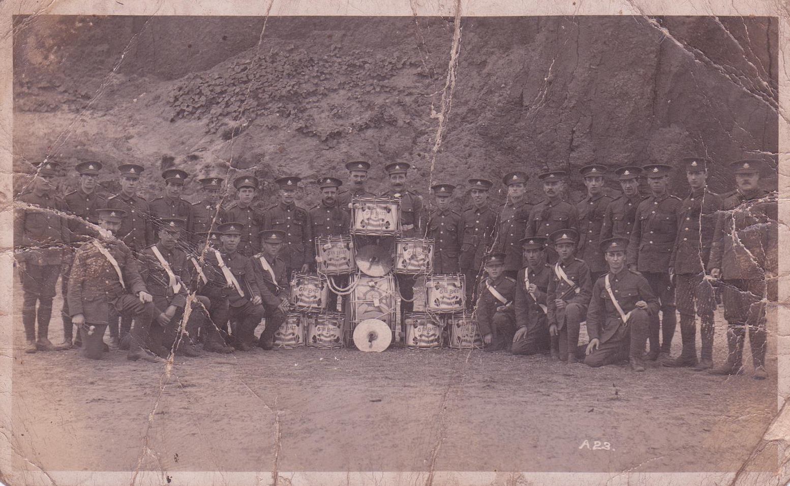 UntitledThe 8th (Nottinghamshire) Battalion Band at Abermaid Camp in 1912.Clewes 1912orksop Companydrum