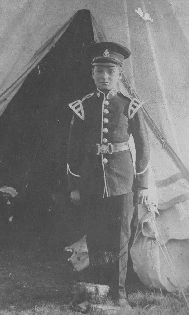 backBelieved to be the Band of the The 6th (Derbyshire) Battalion in Buxton during the Annual Camp of 1910.Bandsmenegypt medalPossibly a former regular soldier attached to the 6th Battalion or he re-enlisted into the Territorial Force.