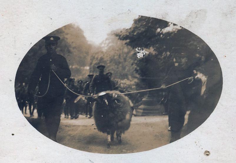 Another image of Duke II being led by men of the 6th Battalion. The park setting of this picture may once again suggest that it was taken in Buxton in 1910 (unkown publisher).
